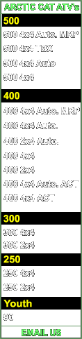 For more infromation regarding our Artic Cat ATV's, please call (207) 487 3338 |