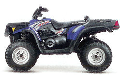 Warning!: Polaris ATVs with engine sizes larger than 90cc may not be ridden by anyone under 16 years of age. ATVs with 89cc engines may not be ridden by anyone under 12 years of age. ATVs with 49cc engines may not be driven by anyone under 6 years of age. All riders under 16 should only ride with adult supervision. All riders should take a safety course. For safety and training information see your dealer or call Polaris at 1-800-342-3764. ATVs can be hazardous to operate. For your safety, always wear a helmet, eye protection and protective clothing. Never ride on public roads, always avoid paved surfaces; Never carry passengers. Never engage in stunt driving. Riding and alcohol/drugs don't mix. Avoid excessive speeds. Be particularly careful on difficult terrain. Remember, ATV riding is more fun when you play by the rules.