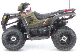 Warning!: Polaris ATVs with engine sizes larger than 90cc may not be ridden by anyone under 16 years of age. ATVs with 89cc engines may not be ridden by anyone under 12 years of age. ATVs with 49cc engines may not be driven by anyone under 6 years of age. All riders under 16 should only ride with adult supervision. All riders should take a safety course. For safety and training information see your dealer or call Polaris at 1-800-342-3764. ATVs can be hazardous to operate. For your safety, always wear a helmet, eye protection and protective clothing. Never ride on public roads, always avoid paved surfaces; Never carry passengers. Never engage in stunt driving. Riding and alcohol/drugs don't mix. Avoid excessive speeds. Be particularly careful on difficult terrain. Remember, ATV riding is more fun when you play by the rules.